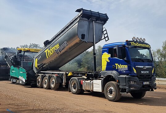 Im Bild als Hängerzug an 4-Achser mit Dreiseitenkipper/Bordmatik
